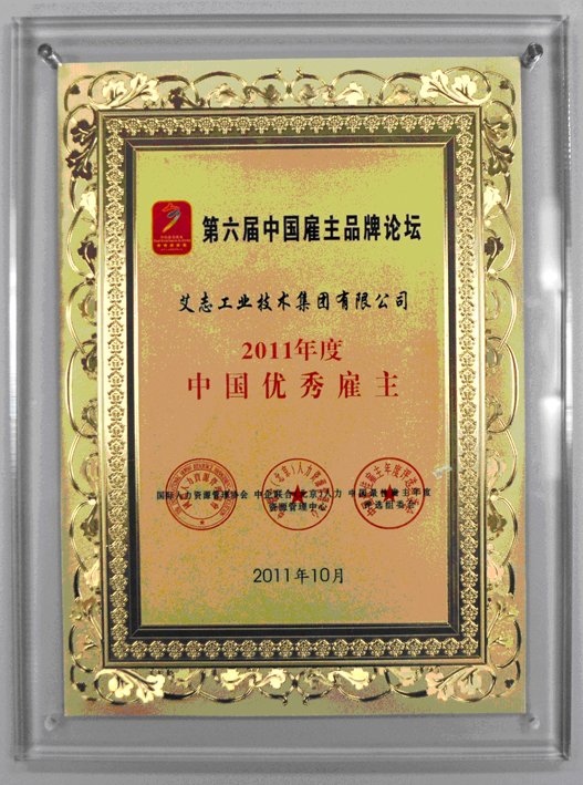 “2011年度中國最佳雇主企業(yè)”年度評(píng)選頒獎(jiǎng)盛典于10月22日在北京隆重召開,艾志工業(yè)技術(shù)集團(tuán)公司獲選得“2011年度中國優(yōu)秀雇主企業(yè)”稱號(hào)。