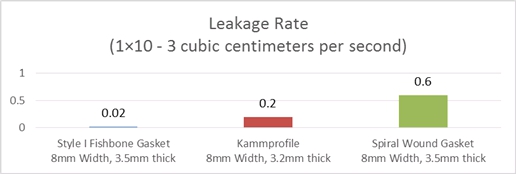 Table 2. A leakage Test compared the three gasket types. The gasket stress was 30 MPa (4,351 psi), and the nitrogen pressure was 4 MPa (560 psi)