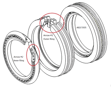 We not only use the Arrow-hook locking mechanism on one ring, but also use it to lock two different rings together. Not so obviously, the two rings of a double seal could separate as well. Why is that? Other than reasons already mentioned, there are two additional factors. Firstly, there is the frictional force- the inner ring has much larger friction than the outer ring. Secondly, material differences- a double seal usually has two different materials, therefore different heat expansion rates.