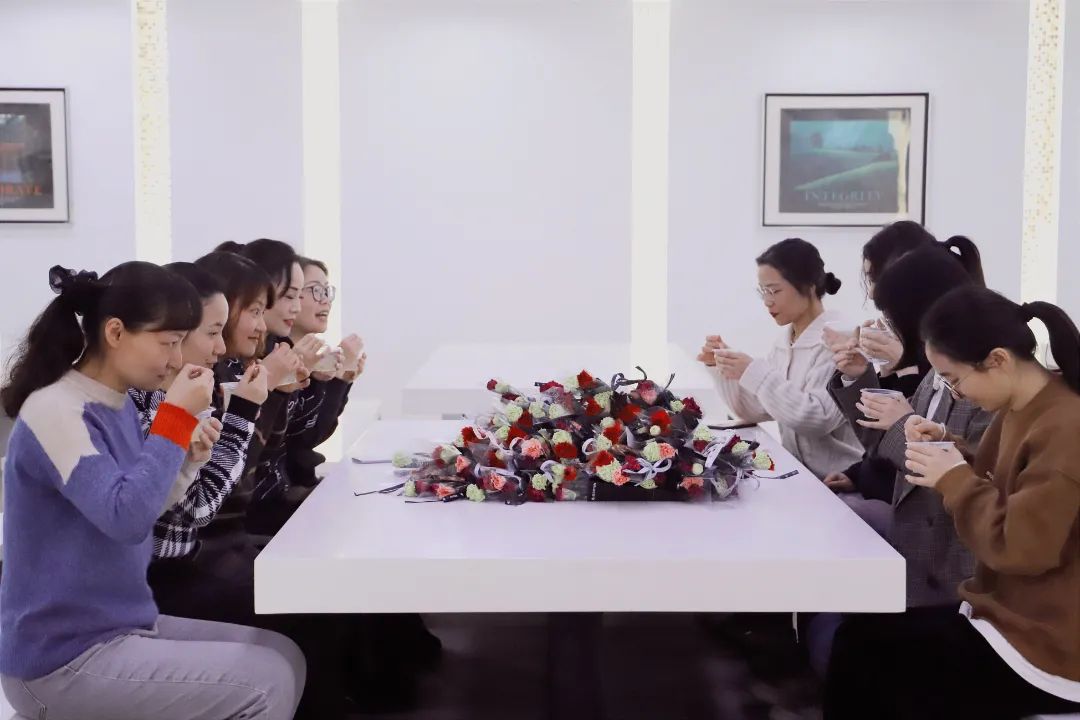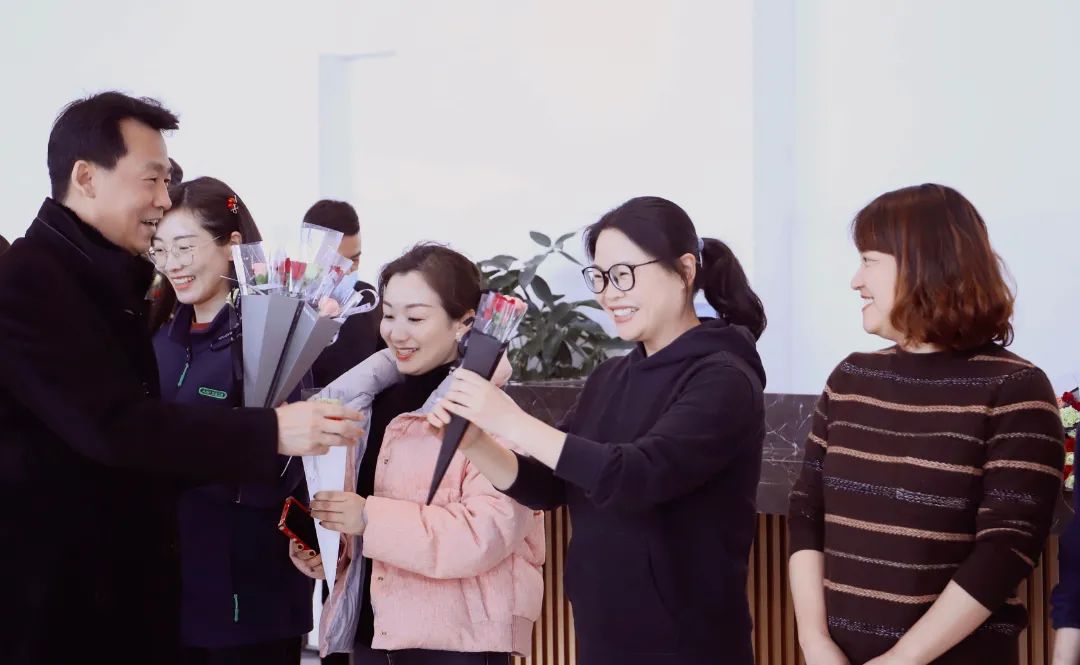 幸得識(shí)卿桃花面,從此阡陌多暖春。 三月春風(fēng)惹人醉,三月是充滿(mǎn)希望的季節(jié),溫暖、新生、花香綿綿。從三月里款款走來(lái)的女子,仿佛盛開(kāi)的桃花,粉黛略施,卻不張揚(yáng),輕輕奏響世間最美的贊歌。 今日的鮮花,由秦經(jīng)理的男團(tuán)組合精心挑選并用心包裝,總經(jīng)理趙景陽(yáng)先生、工會(huì)主席張軍先生為女神們傾情獻(xiàn)花,看女神們的欣喜笑容就知道有多滿(mǎn)意。