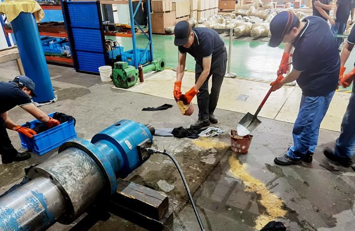 ▲ 對現(xiàn)場的泄漏物進(jìn)行清理