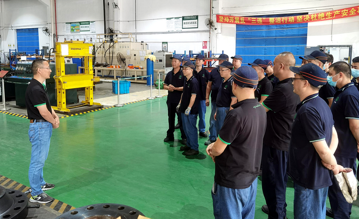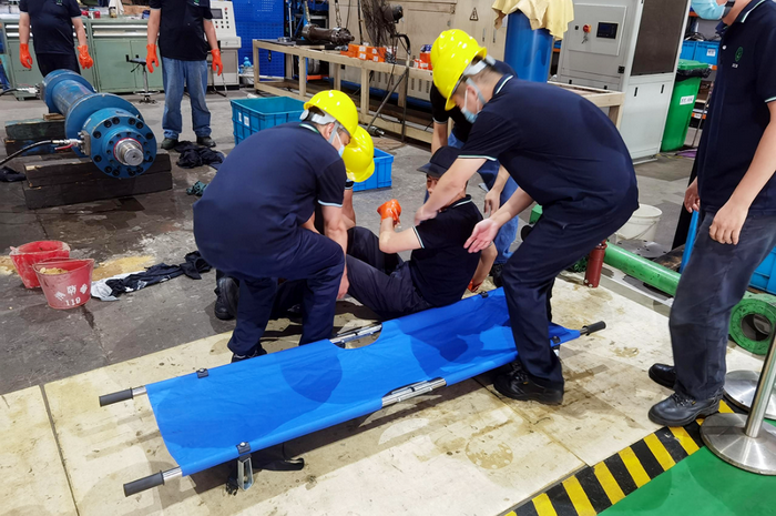 應(yīng)急救援預(yù)案的應(yīng)急演練是為了檢驗、評價和保持公司生產(chǎn)安全事故應(yīng)急救援預(yù)案、環(huán)境突發(fā)事件應(yīng)急救援預(yù)案的應(yīng)急能力及有效性。1、可在事故真正發(fā)生前暴露預(yù)案和程序的缺陷;2、發(fā)現(xiàn)應(yīng)急資源的不足(人力和設(shè)備等);3、改善各應(yīng)急部門、機(jī)構(gòu)、人員之間的溝通與協(xié)調(diào);4、增強(qiáng)職工應(yīng)對突發(fā)事故救援的信心和救援意識;5、提高應(yīng)急救援人員的熟練程度和技術(shù)水平,進(jìn)一步明確各自的崗位與職責(zé)。2022年8月31日15時10分,在江寧廠區(qū)液壓缸生產(chǎn)中心裝配組進(jìn)行。現(xiàn)場處置方案演練:針對公司突發(fā)環(huán)境事件應(yīng)急救援預(yù)案的部分應(yīng)急響應(yīng)功能,檢驗、評價公司應(yīng)急組織的應(yīng)急能力。1、液壓油泄漏事件的應(yīng)急響應(yīng)和救援。2、發(fā)生環(huán)境突發(fā)事件時,對現(xiàn)場環(huán)境的應(yīng)急處理。3、如發(fā)生人員傷亡,急性中毒等額外情況,對傷員的初步處理。