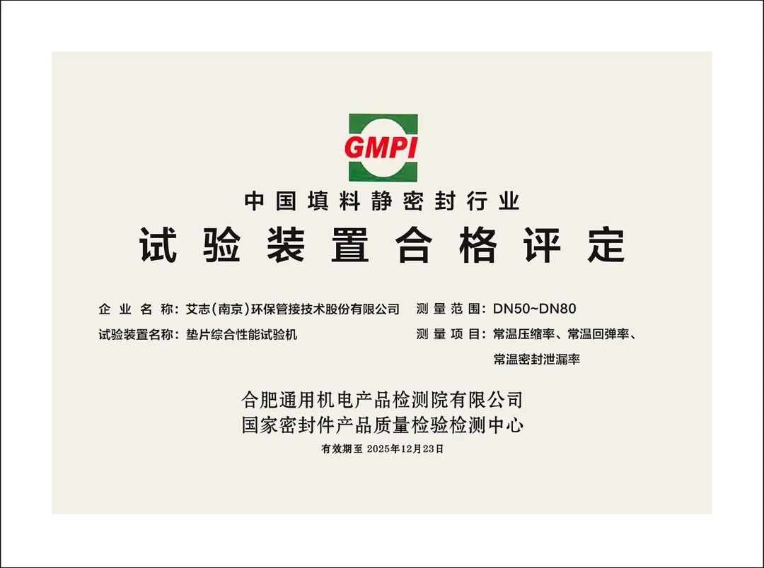 經(jīng)合肥通用機(jī)電產(chǎn)品檢測院及國家密封件產(chǎn)品質(zhì)量檢測中心對我司試驗(yàn)裝置墊片綜合性能試驗(yàn)機(jī)的檢測,特授予我司 “試驗(yàn)裝置合格評定” 證書;??