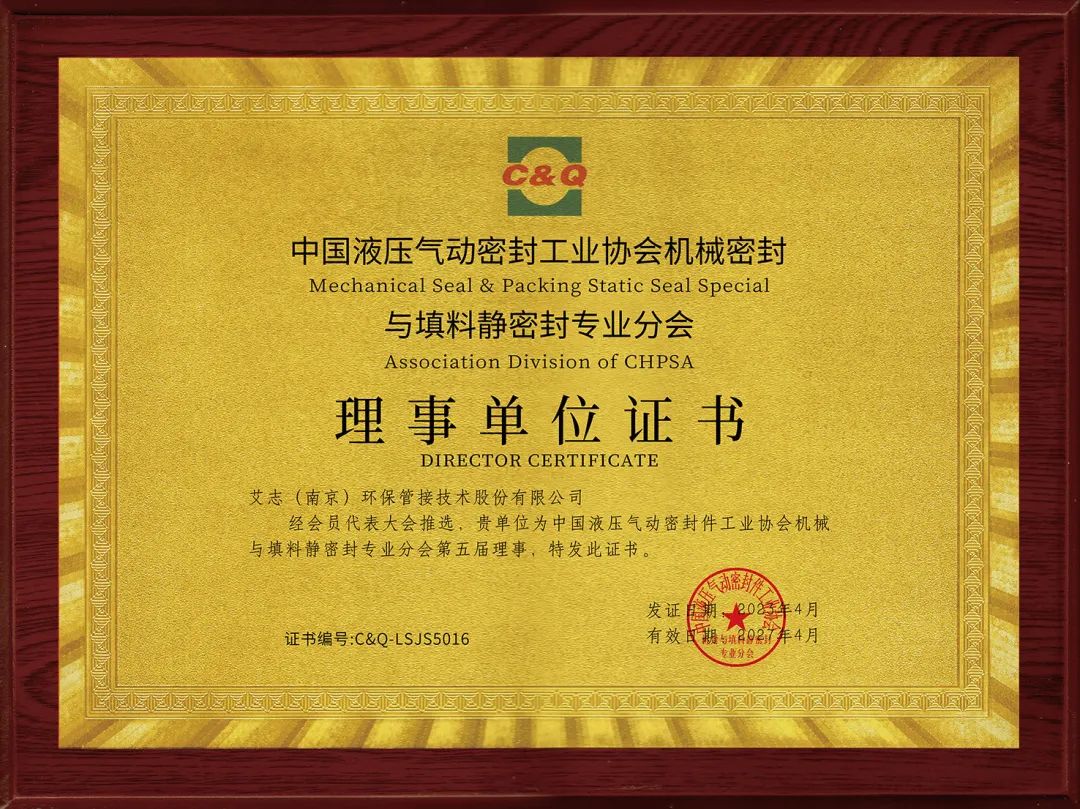 經(jīng)會(huì)員代表大會(huì)推選,我司被評為中國液壓氣動(dòng)密封工業(yè)協(xié)會(huì)機(jī)械密封與填料靜密封專業(yè)分會(huì)的第五屆理事,并頒發(fā)了 “理事單位證書” 。??