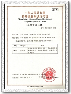 特種設(shè)備制造許可證 壓力管道元件 |