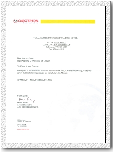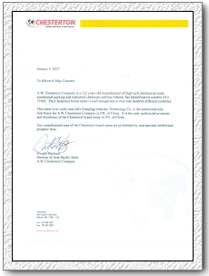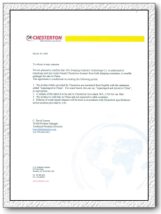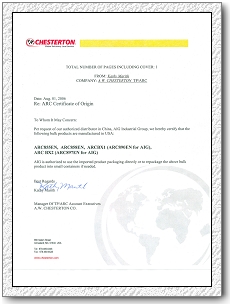 Chesterton潤(rùn)滑,ARC授權(quán)書(中) | |