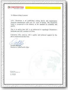 Chesterton潤(rùn)滑,ARC授權(quán)書(英) |