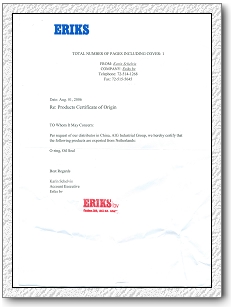 Eriks原產(chǎn)地證明 |